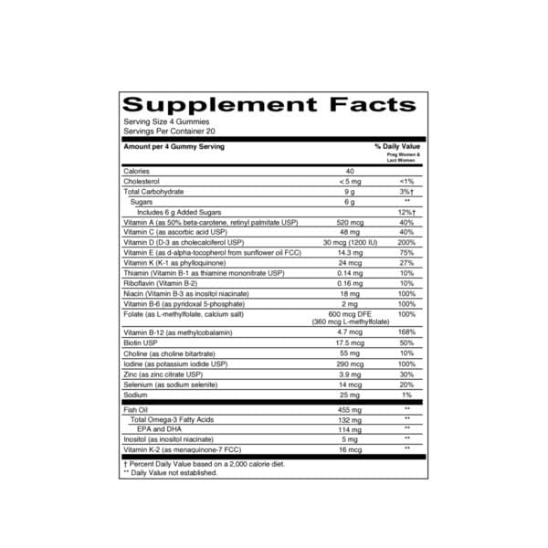 • Better Nutrient Sources: We include bioavailable forms of high-quality nutrients that are easy for your body to absorb like folate as methylfolate, vitamin D as D3, vitamin B12 as methylcobalamin, and zinc citrate
