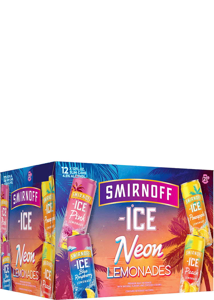 The Smirnoff Ice Neon Lemonades Variety pack delivers four dynamic lemonades that combine sweet fruit flavors with lemon tartness: Pink Lemonade, Peach Lemonade, Blue Raspberry Lemonade, and Pineapple Lemonade.