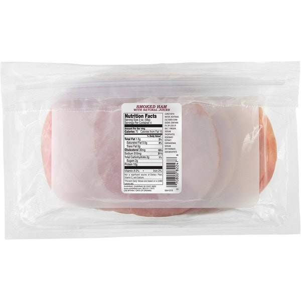 All Smithfield brands are driven by the love of meat. That’s why our offerings are so vast: because we all need our pork and specialty prepared meats our way. Smithfield Prime Fresh Deli Pre-Sliced Smoked Ham brings classic flavor to your lunches, snacks or dinners. Each serving of deli-style ham provides 10 grams of protein and is filled with flavoring while remaining gluten free and MSG free, making it an excellent way to enjoy the authentic taste of ham in a way that’s wholesome and convenient. Deli ham slices elevate your sandwiches with delicious, juicy flavor while still remaining 97% fat free. This premium ham lunch meat is smoked for the savory flavor you and your family love. This ham deli meat comes pre-sliced, perfect for stacking on your favorite deli creations. Add ham slices to sandwiches or wraps, or pile it on a classic grilled cheese. This sliced ham lunch meat comes in a resealable pack for easy opening and storage. Keep ham refrigerated to maintain freshness. Smithfield has set sustainability goals because we believe we can build a more sustainable business and contribute to a better future.