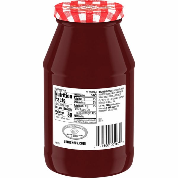 For over 100 years, families have loved Smucker’s Strawberry Jam. With just the right balance of fruit and sweetness, this tasty jam could be used for almost anything. Make a balsamic vinaigrette, pair it with chocolate, or add a heaping dollop to your morning oatmeal. This jam is also great to spread on English muffins, scones, or a classic PB and J sandwich. We use ripe strawberries, so the flavors can shine through in every single bite. Snack time will always be an adventure when you bring out Smucker’s Strawberry Jam.