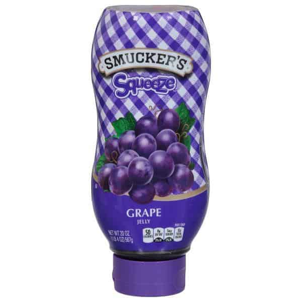 Grape jelly can be messy, but not with Smucker’s Squeeze Grape Jelly. It is the same classic grape flavor you know and love, in an easy to use, kid-friendly squeezable bottle. No spoons or butter knives are needed to use Smucker’s Squeeze Grape Jelly, so you can enjoy the sweetness you expect without any sticky hands or countertops. This jelly is made from high-quality fruit juice. Smucker’s Squeeze Grape Jelly is perfect for on-the-go lunches, or any quick snack where you don’t want added cleanup.