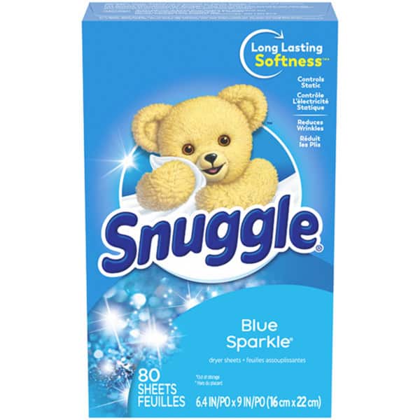 Snuggle’s original Blue Sparkle scent is a fresh and clean blend of white floral and bright green citrus notes that snuggle up to warm woody notes and soft musk for a comforting, long-lasting freshness your family will love. In addition to using in the dryer to make your clothes feel softer, dryer sheets can also be used in a variety of places like closets, gym bags, suitcases, and cars to make them smell fresh. For long-lasting freshness and static reduction, add a Snuggle brand dryer sheet to every load you dry. Place the sheet on top of wet clothes and start the dryer cycle as usual. Discard after use. Safe for standard and HE dryers. Includes one box of 80 dryer sheets.