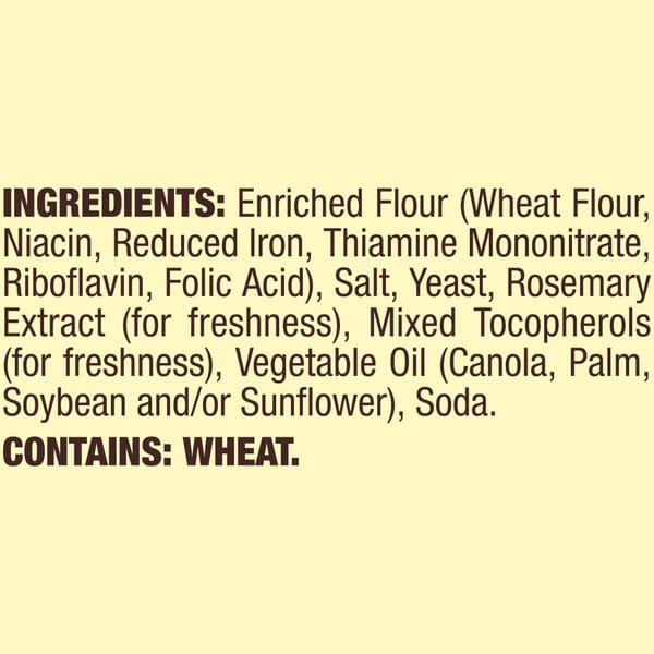 Enriched Flour (wheat Flour, Niacin, Reduced Iron, Thiamine Mononitrate, Riboflavin, Folic Acid), Salt, Yeast, Rosemary Extract (for Freshness), Mixed Tocopherols (for Freshness), Canola Oil, Soda