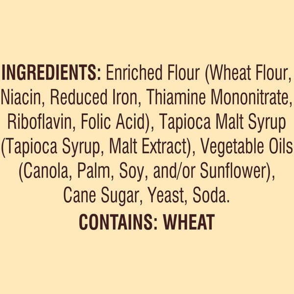 Enriched Flour (wheat Flour, Niacin, Reduced Iron, Thiamine Mononitrate, Riboflavin, Folic Acid), Water, Malt (tapioca Syrup, Malt Extract), Cane Sugar, Canola Oil*, Yeast, Soda.