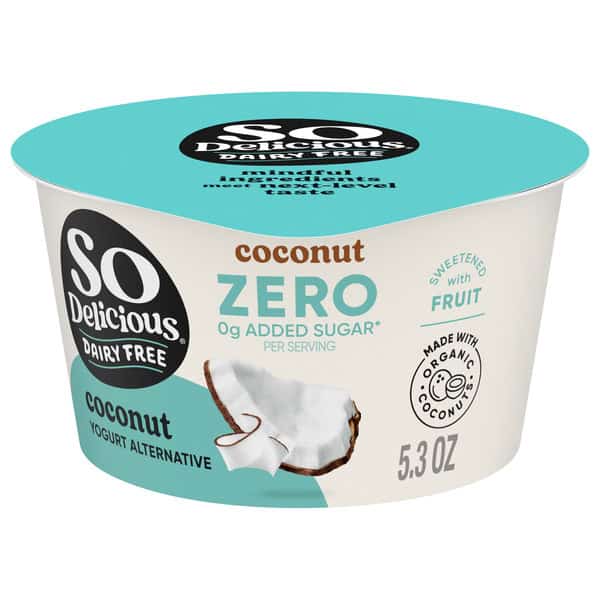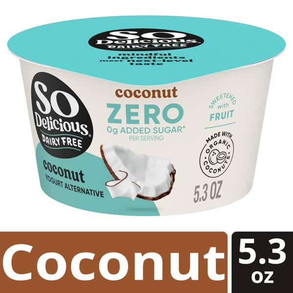 • DAIRY FREE YOUR MIND: One 5.3 oz So Delicious Dairy Free 0g Added Sugar Coconut Coconutmilk Yogurt Alternative container