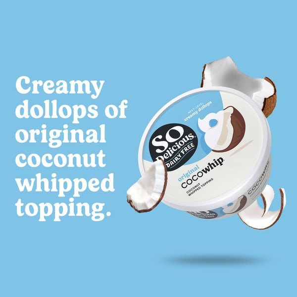 Take your favorite desserts and beverages to new heights with the dairy-free, flavor-full, next-level creamy goodness of So Delicious Cocowhip Original Coconut Whipped Topping. Made with organic coconut oil, this sweet, fluffy dairy free whipped topping will make your taste buds do a double take. With an over-the-top satisfying taste that is delicious like delicious should be, every creamy dollop of this vegan whipped topping will transform ice cream, shakes, coffee, pies, crepes, berries and more into next-level treats. At So Delicious, We don’t make plant based alternatives. We make stone cold favorites. We’re reimagining what’s possible by turning mindful ingredients into shockingly great taste experiences. So Delicious dairy-free whipped topping is lactose free, Certified Vegan and Non-GMO Project Verified. Meet the masterfully blended line of So Delicious frozen desserts and dairy-free products and try all the flavors! Enjoy a whole new world of show-stopping creaminess and deliciousness without the dairyness with So Delicious Cocowhip Original Coconut Whipped Topping.