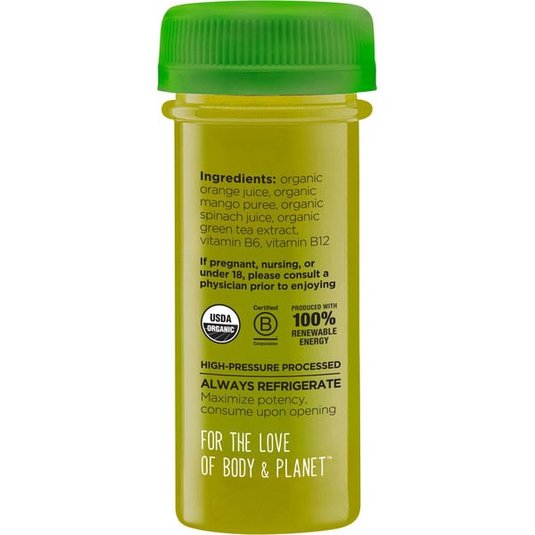 organic orange juice, organic mango puree, organic spinach juice, organic green tea extract, vitamin B6, vitamin B12