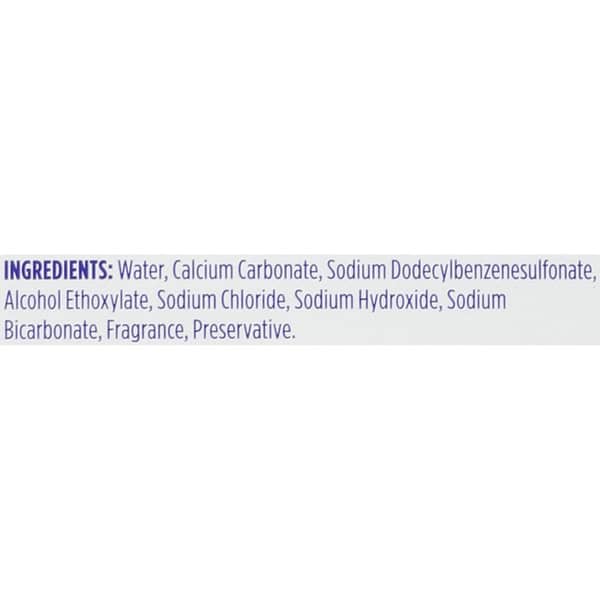 Water, Calcium Carbonate, Sodium Dodecylbenzenesulfonate, Alcohol Ethoxylate, Sodium Chloride, Sodium Hydroxide, Sodium Bicarbonate, Fragrance, Preservative