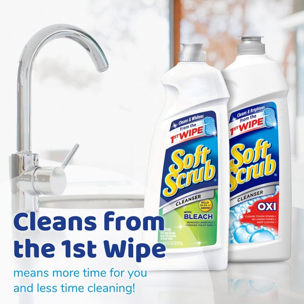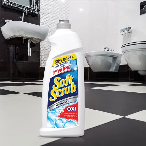 Soft Scrub Oxi Cleanser is infused with millions of Oxi scrubbers that activate while you clean. With instant cleaning action, Soft Scrub Oxi Cleanser gives you a deep clean by penetrating the stain, resulting in a shiny clean surface. This product is Orthodox Union certified Kosher. Formulated for use on surfaces throughout the kitchen and bathroom, Soft Scrub Oxi Cleanser removes wine, coffee, juice, and tea stains as well as many other stains. Use Soft Scrub Oxi Cleanser to clean bathtubs, countertops, showers, sinks, stovetops, tiles, and toilets. This product is Orthodox Union certified Kosher. This package includes one 36 ounce bottle of Soft Scrub Oxi Cleanser. Directions: Shake well before use. Squeeze directly onto surfaces or onto damp cloth. Rub gently. Rinse or wipe clean. Caution: Eye Irritant. Contains calcium carbonate and detergent. First aid: Eyes—Flush with water for 15 minutes. If swallowed—Drink a glassful of water. Call physician. Keep out of reach of children. This package contains one Soft Scrub Multi-Purpose Kitchen and Bathroom with Oxi, 36 Ounce cleaner.