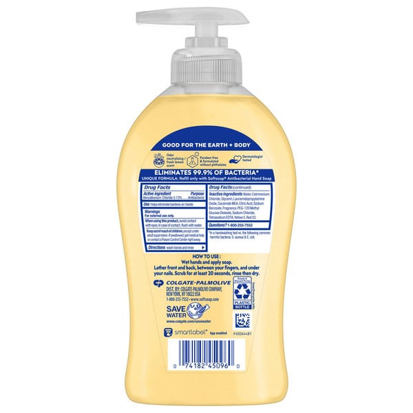 From the NUMBER ONE liquid hand soap brand (1), comes Softsoap Antibacterial Kitchen Fresh Hands Liquid Hand Soap which eliminates 99.9% of bacteria (2). With a crisp lemon scent, this antibacterial hand soap effectively cleans hands while infusing small moments with joy. Our liquid hand soap is enriched with moisturizers and helps protect skin’s natural barrier by retaining skin’s natural moisture. This special formula leaves skin feeling soft. This fresh kitchen hand soap is paraben free, formulated without phthalates, and dermatologist tested. Feel the joy of clean with Softsoap hand soap!