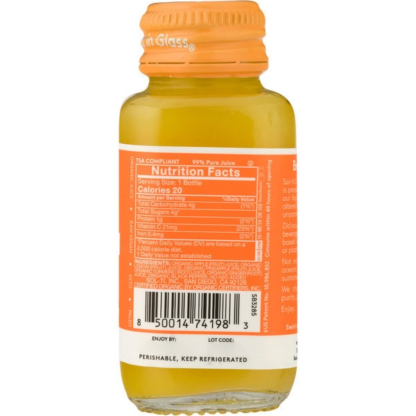 • TROPICAL DIGESTIVE BOOST: One (1) 2.1 oz Sol-ti SuperBoost SuperShot™, featuring a refreshing blend of 17000mg of organic pressed pineapple and turmeric for optimal digestive health.