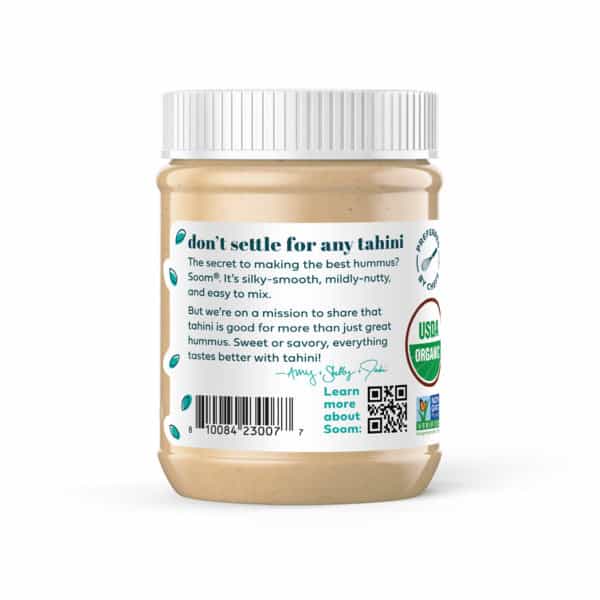 Don’t settle for any tahini, Soom Organic Tahini is the best! It’s silky-smooth, mildly-nutty, and easy to mix. The secret is in the seeds. We use only premium sesame seeds that are roasted and ground to perfection. Add Soom to any dish, savory or sweet, to make even your favorite dish better!