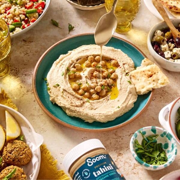 Soom Tahini is great for more than just hummus (although that’s a pretty great way to use it, too)! It’s a perfect base for dressings, sauces, dips, and spreads and makes your favorite soups and smoothies extra creamy. If you love your baked goods super moist and rich (and who doesn’t) try adding Soom Tahini!