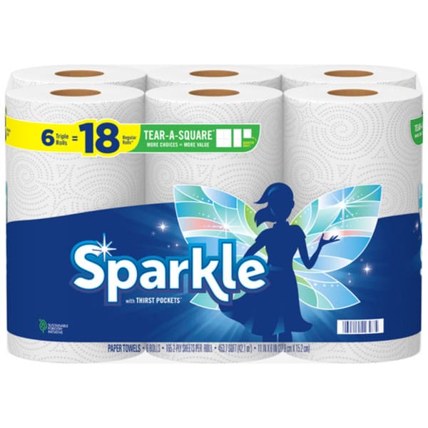 Sparkle® Tear-A-Square® 2-ply Paper Towels with Thirst Pockets® are specially designed with an extra perforation on every sheet – putting you in control of how much towel you use for the task at hand. Choose between a full sheet, a half sheet, or a quarter sheet option. Each Triple Roll contains 165 2-ply sheets. Sparkle® Paper Towels are just right for cleaning up your everyday messes without cleaning out your piggy bank. Whether you need to wipe up a mess in your kitchen, take care of small drips and dribbles or clean little hands and faces, with Sparkle® Tear-A-Square®, you can choose just the right amount of paper towel you need so you can spend less on your everyday messes.