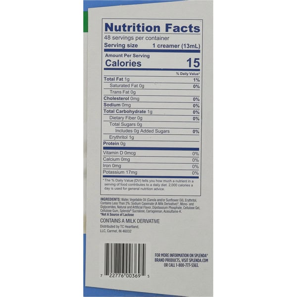 Water, Vegetable Oil (canola And/or Sunflower Oil), Erythritol, Contains Less Than 2%: Sodium Caseinate (a Milk Derivative)*, Mono- And Diglycerides, Natural And Artificial Flavor, Dipotassium Phosphate, Cellulose Gel, Cellulose Gum, Splenda Sucralose, Carrageenan, Acesulfame-k.