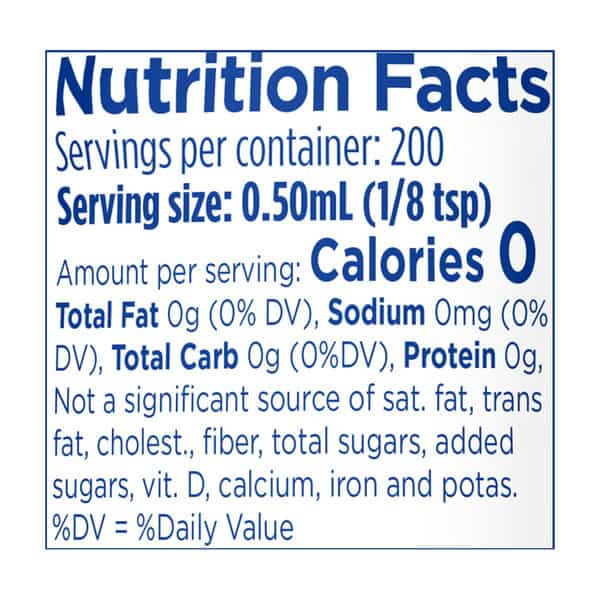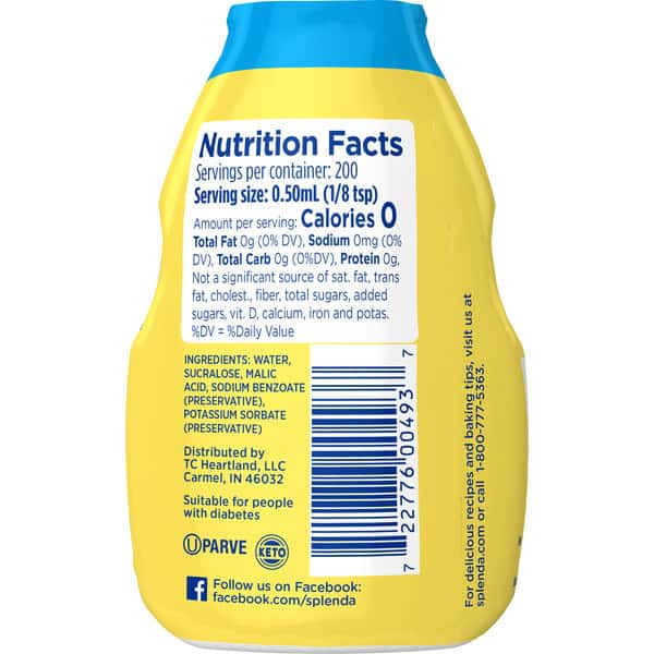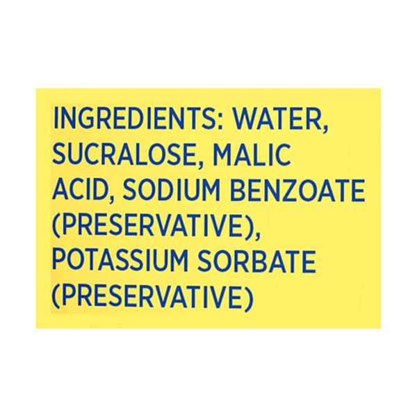 Water, Sucralose, Malic Acid, Sodium Benzoate (preservative), Potassium Sorbate (preservative)