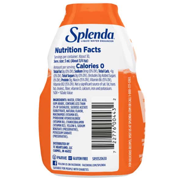 Take your water to the next level with Splenda Liquid Water Enhancers. Enjoy the tropical flavor of Mandarin Orange sweetened with America’s Favorite Sweetener. Add 1 squeeze to any 12oz of water for delicious flavored water, anytime and anywhere.