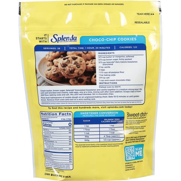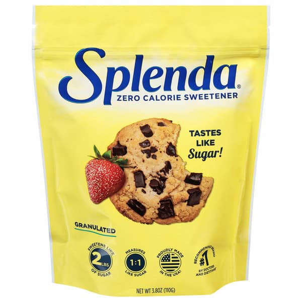 Use Splenda Zero Calorie Sweetener, Granulated just like sugar – it measures cup for cup in cooking, baking, and beverages. With Splenda Zero Calorie Sweetener, you can significantly reduce the calories and carbohydrate that sugar adds! A cup of Splenda Granulated Sweetener has 678 fewer calories than a cup of sugar, so with Splenda Sweetener Products you can have your cake and eat it too!