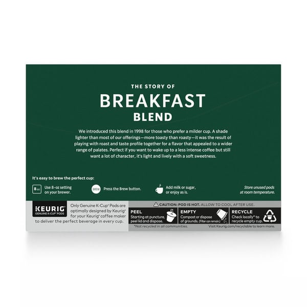 • 10-count K-Cup pods box of Breakfast Blend medium roasted coffee