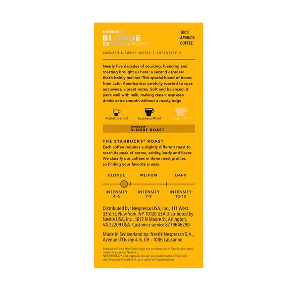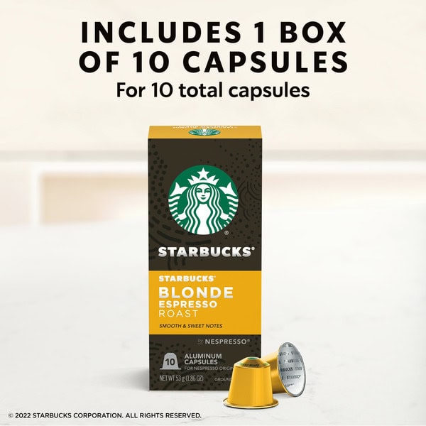• Package contains 1 box of 10 Starbucks Blonde Espresso Roast Nespresso Capsules to make up to 10 cups