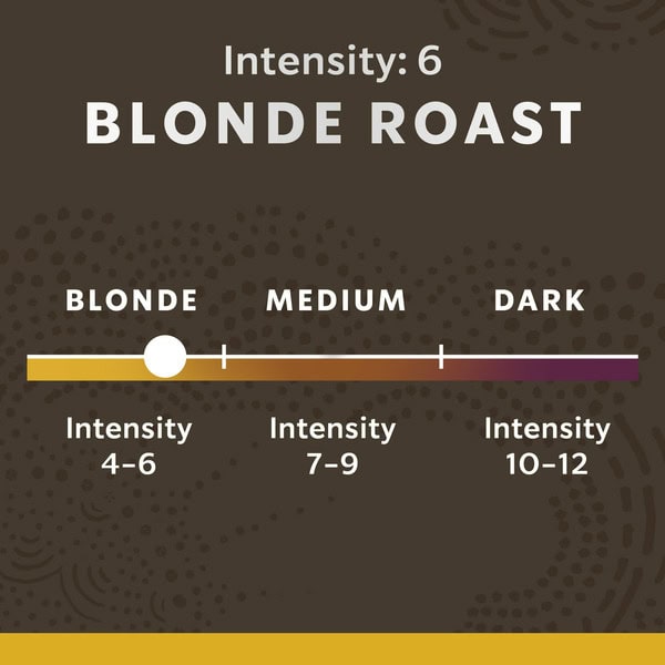• Starbucks Blonde Espresso Roast delivers a softer, more balanced espresso taste with sweet, vibrant notes. The intensity level of this coffee is 6, a Starbucks Blonde roast
