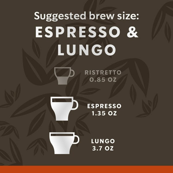 Try with: Ice or your choice of milk. Espresso 40 ml 1.35 fl oz; Lungo 110 ml 3.71 fl oz. Ice. Milk.