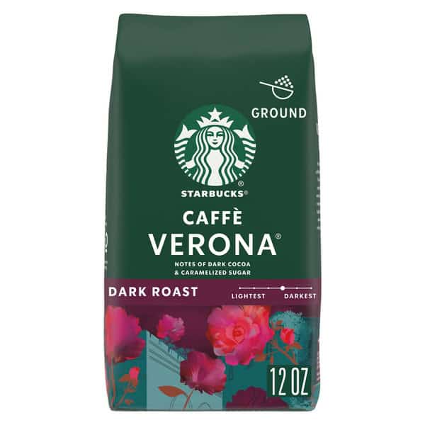 • PREMIUM GROUND COFFEE: Starbucks delivers fresh tasting roasted coffee cup after cup with this 12-ounce bag of Caffè Verona dark roast ground coffee