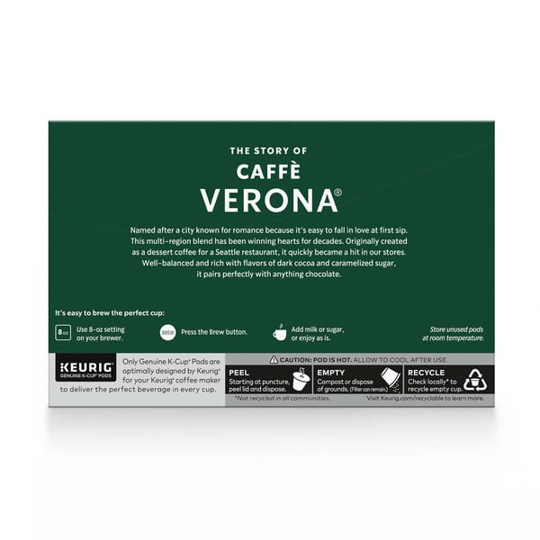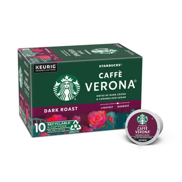 • 10-count K-Cup pods box of Caffè Verona dark roasted coffee