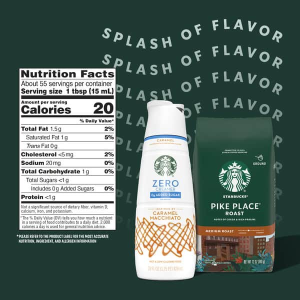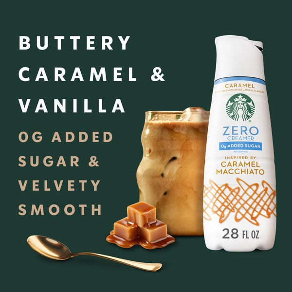 • RICH, CARAMEL FLAVOR: Our Starbucks Zero Grams Added Sugar, Caramel Flavored Coffee Creamer is carefully crafted and inspired by our popular caramel macchiato. This Starbucks creamer is the perfect addition to your joyful coffee moment