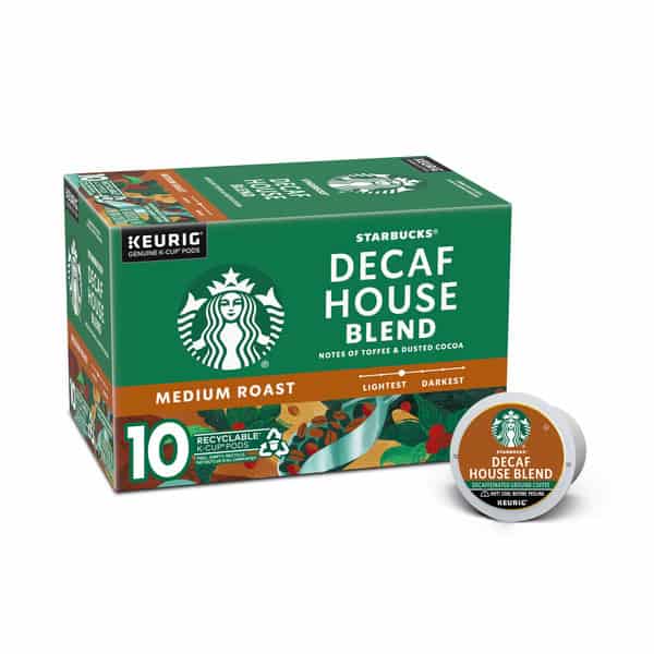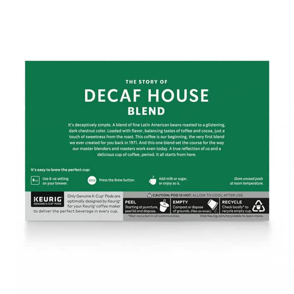 • 10-count K-Cup pods box of House Blend decaf coffee
