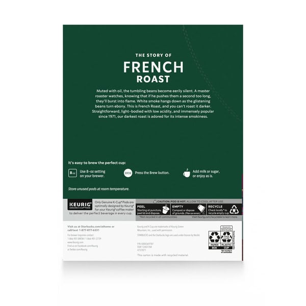 • 32-count K-Cup pods box of French Roast dark roasted coffee