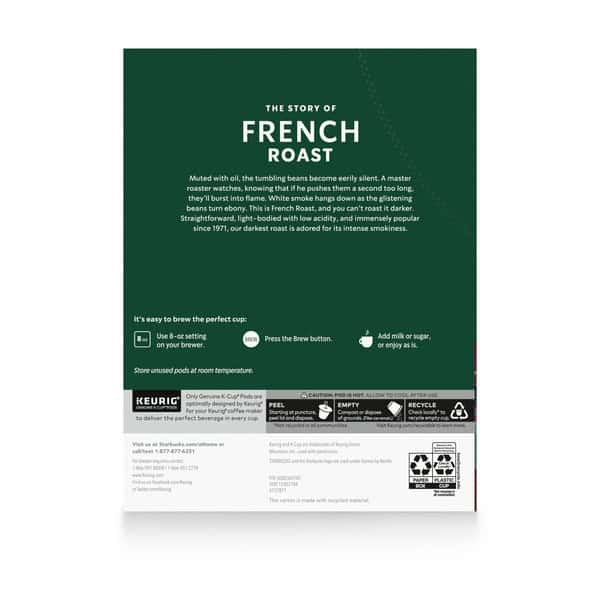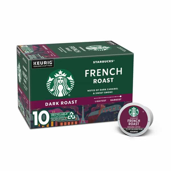 • 10-count K-Cup pods box of French Roast dark roasted coffee