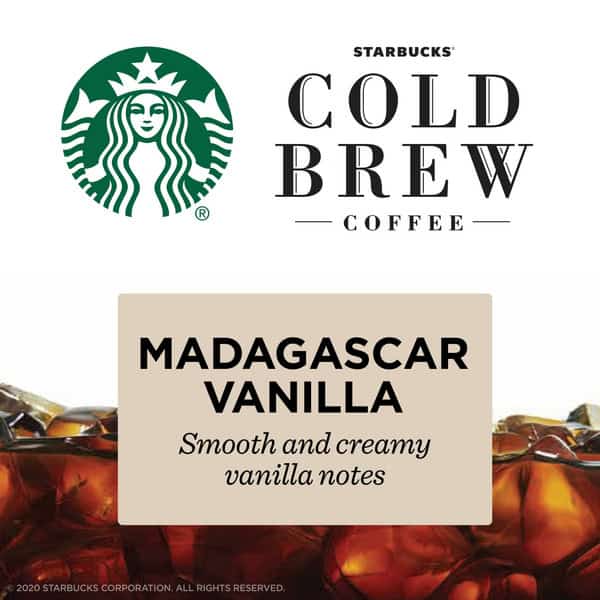• PERFECTLY DELICIOUS: Our medium-roast Starbucks Naturally Flavored Madagascar Vanilla Cold Brew coffee is deliciously sweetened and smooth with a hint of creamy vanilla