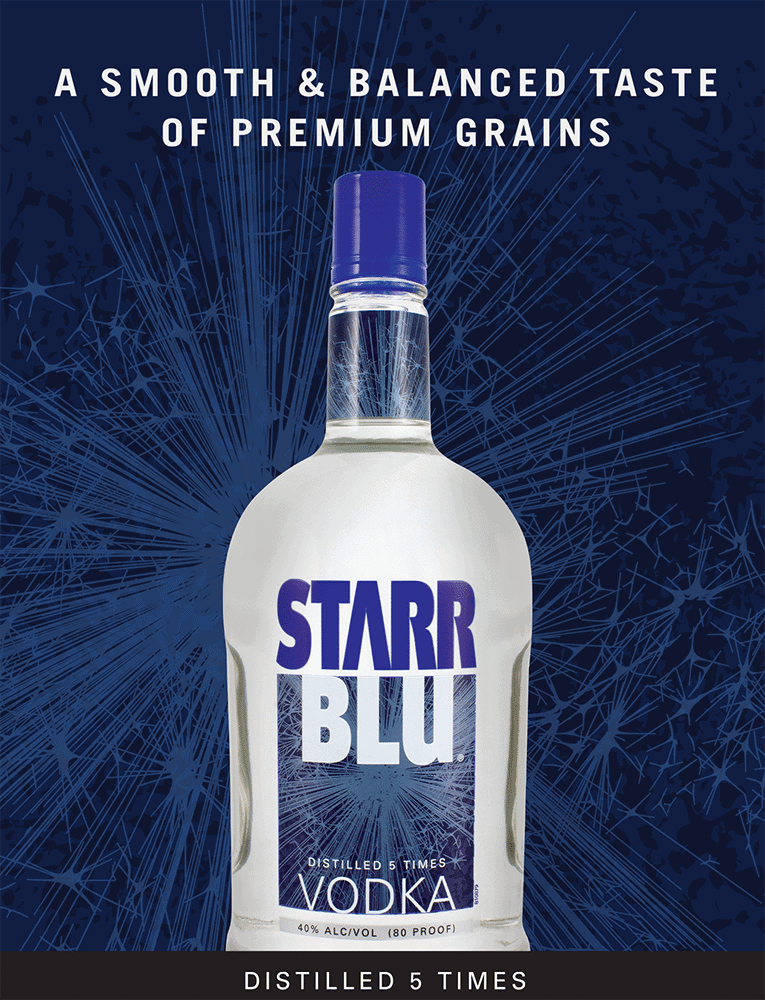 USA- Distilled five times and painstakingly filtered for a crisp, smooth taste, Starr Blu provides exceptional Vodka distilled from the finest American grain. The perfect vodka for your favorite mixed drink. Gold Medal and “Best Buy”, Beverage Testing Institute.