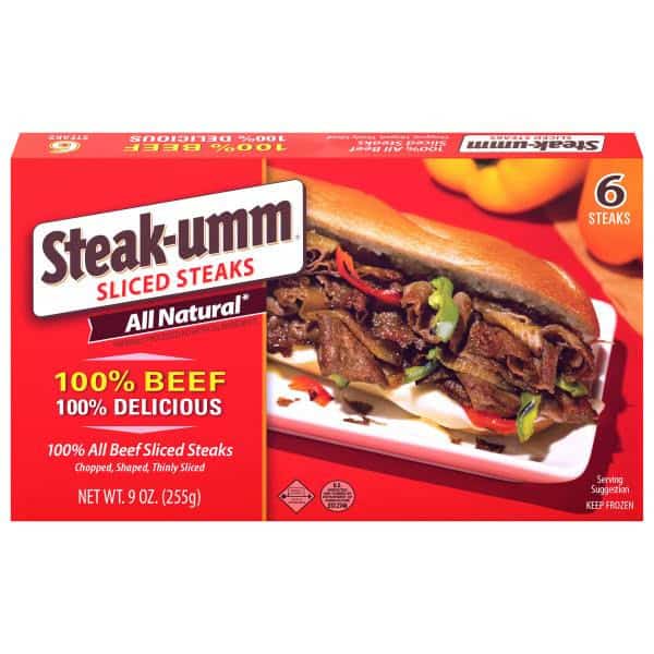 The above nutrition facts are for the product as consumed, one cooked portion, and are based upon the following cooking instructions: Place frozen steak on 350 degrees griddle or in trying pan on medium heat for approximately one minute on one side, and about 15-20 seconds on the other side. Cooking Instructions: Cook frozen. Preheat fry pan 350 degrees F (medium-high). Add Steak-umm and cook for approximately one minute. Turn steaks and cook other side for 15-20 seconds until no pink is showing. Steak-umm should be brown on both sides. Caution: Frozen foods can cause spattering when added to hot pan. Add product carefully.