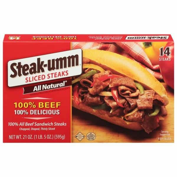 All natural (Minimally processed, no artificial ingredients). 100% Beef. 100% Delicious. Steak-umm Sliced Steaks are delicious, easy to prepare and ready in just two minutes. They’re perfect for any meal or snack and are 100% beef, with no artificial anything. Breakfast. Snacks. Meals. Keep an extra box in your freezer because everyone loves Steak-umm!