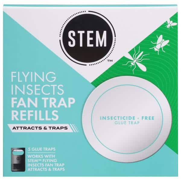 Directions for Use: 1. To open, rotate the upper part of the device counterclockwise. 2. Remove the protective peel from the glue trap to expose the sticky surface. 3. Place the glue trap into the device base, sticky side up. Insert and rotate bottom of the device counterclockwise to close. 4. When full, unplug and replace with a new glue trap. For Best Results: Use in areas where insects are present: kitchens, bathrooms, basements, near plants, pet feeding stations, dining areas, entryways, and more. The UV light of the fan device is most effective in dark spaces or at night. For household use only. See additional safety and storage and disposal information included with fan trap device.