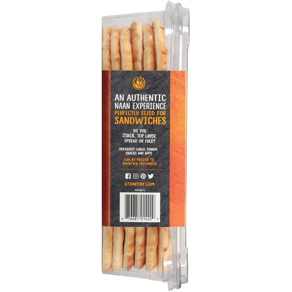 Authentic flatbreads. Tandoor oven baked (Baked in our patented tandoor tunnel oven). Made with real onions. No preservatives. New flavor! The tandoor oven baked naan you love perfectly-sized for sandwiches. Do you stack, top, layer, spread or fold? Breakfast, lunch, dinner, snacks & apps. stonefire.com. Facebook. Instagram. Pinterest. Twitter. Questions or Comments? Contact us (at)www.stonefire.com. Product of Canada.