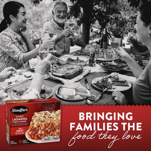 • FRESHLY MADE, SIMPLY FROZEN: With Stouffer’s frozen dinners in your freezer, you’ll always be ready to serve up something delicious — no additional ingredients required. Keep this meat lasagna frozen until you’re ready to cook and serve