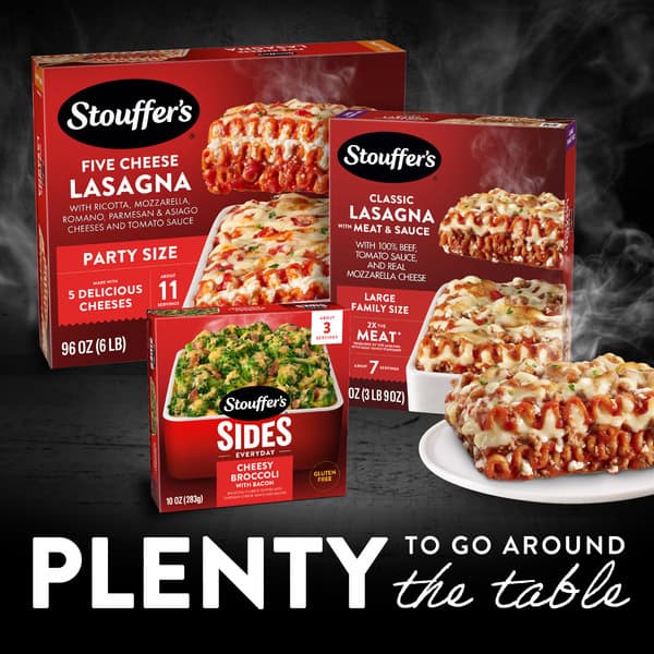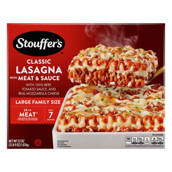 • SERVE UP COMFORT WITH EVERY BITE: Gather around the table with your loved ones when you serve Stouffer’s Large Family Size Lasagna with meat & sauce. It’s a delicious dish that will turn dinnertime into a joyful moment