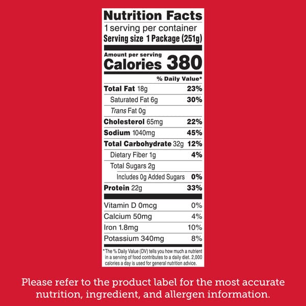 Stouffer’s Fried Chicken Frozen Meal offers a quick, easy solution for lunch or dinner. This frozen chicken dinner includes crispy white meat chicken with russet mashed potatoes and homestyle gravy. This classic fried chicken meal is sure to satisfy every taste bud. This prepared meal is made with no preservatives and offers 22 grams of protein per serving. Stouffer’s single serve meals are easy to prepare in the microwave or oven, making this frozen fried chicken a great choice when you’re short on time. Keep Stouffers chicken and mashed potatoes in the freezer until you’re ready to enjoy.