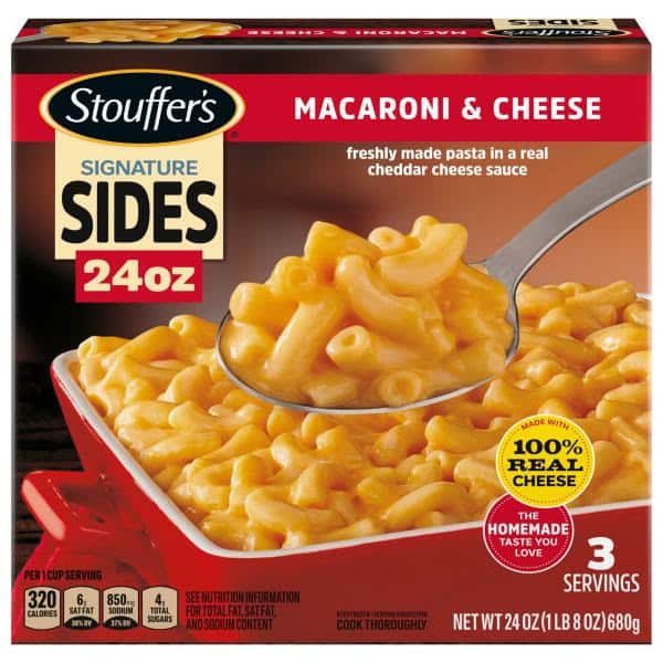 • Stouffer’s mac and cheese frozen side features freshly made pasta in a real cheddar cheese sauce