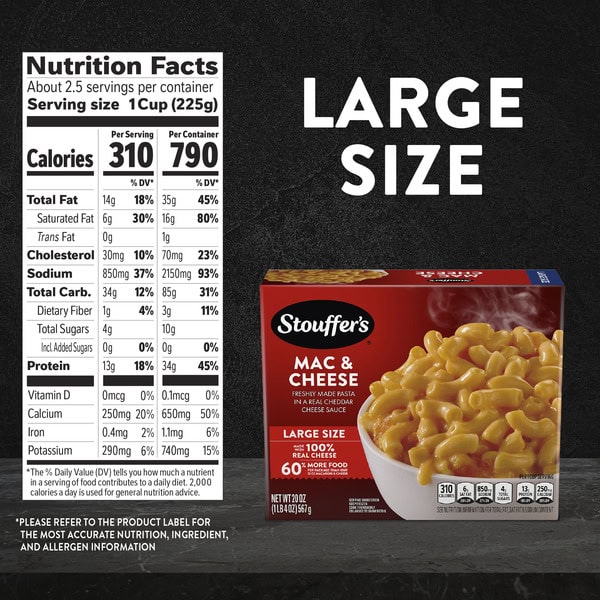 • SERVE UP COMFORT WITH EVERY BITE: You’ll love every bite of Stouffer’s Large Size Mac and Cheese. Make any dinnertime a joyful moment with homestyle food
