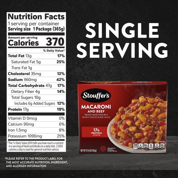 • CRAFTED WITH QUALITY YOU CAN TASTE: Stouffer’s macaroni and beef is thoughtfully crafted with flavorful, quality ingredients