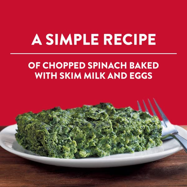 • This frozen spinach dish contains no preservatives