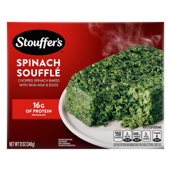 • One 12 oz box of Stouffer’s Spinach Souffle Frozen Side Dish