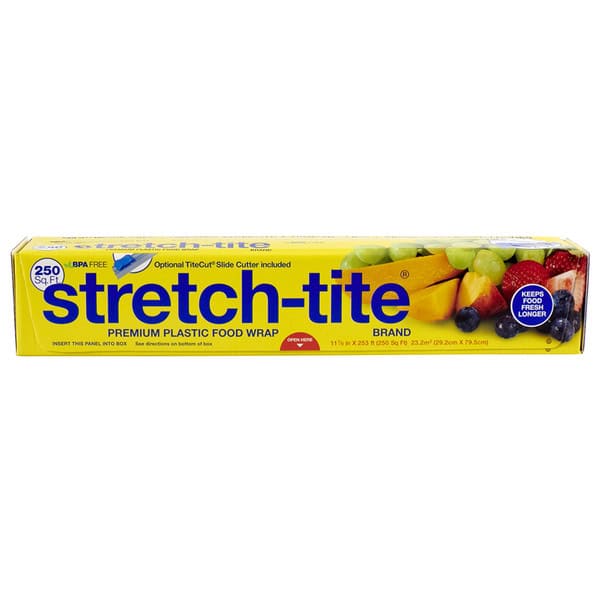 23.22 m sq. 258.06 ft x 11-5/8 in (78.65 m x 295 mm). BPA free. More cling. More stretch. More strength. More wrap. More wrap for your money. www.stretchtite.com.