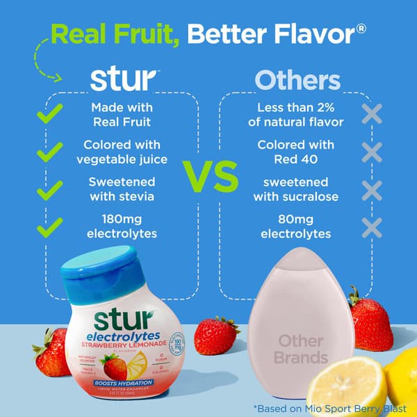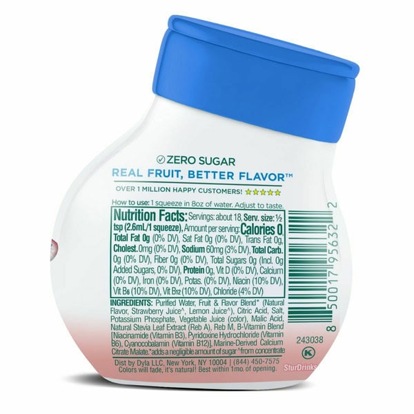 Purified Water, Fruit & Flavor Blend* (natural Flavor, Strawberry Juice^, Lemon Juice^), Citric Acid, Salt, Potassium Phosphate, Vegetable Juice (color), Malic Acid, Natural Stevia Leaf Extract (reb A), Reb M, B-vitamin Blend [niacinamide (vitamin B3), Pyridoxine Hydrochloride (vitamin B6), Cyanocobalamin (vitamin B12)], Marine-derived Calcium Citrate Malate.