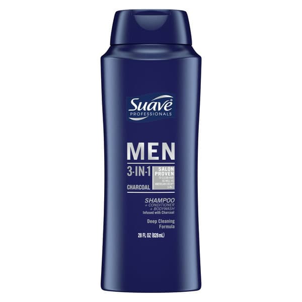 Suave Professionals Men Charcoal 3 in 1 Shampoo, Conditioner and Body Wash has an advanced formula, to deep clean and condition hair, as well as deep clean skin, in just one step. Take care of all three steps together, and reduce waste by uniting our best body wash, shampoo and conditioner for helping to deep clean hair and skin in one.