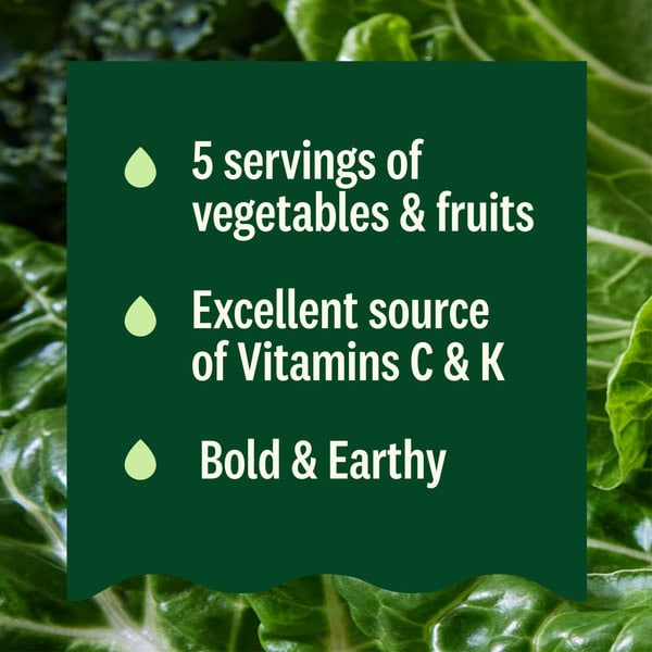 DRINK YOUR VEGETABLES: With 5 servings of fruits and vegetables and no added sugar, this organic green juice is like having a salad in a bottle